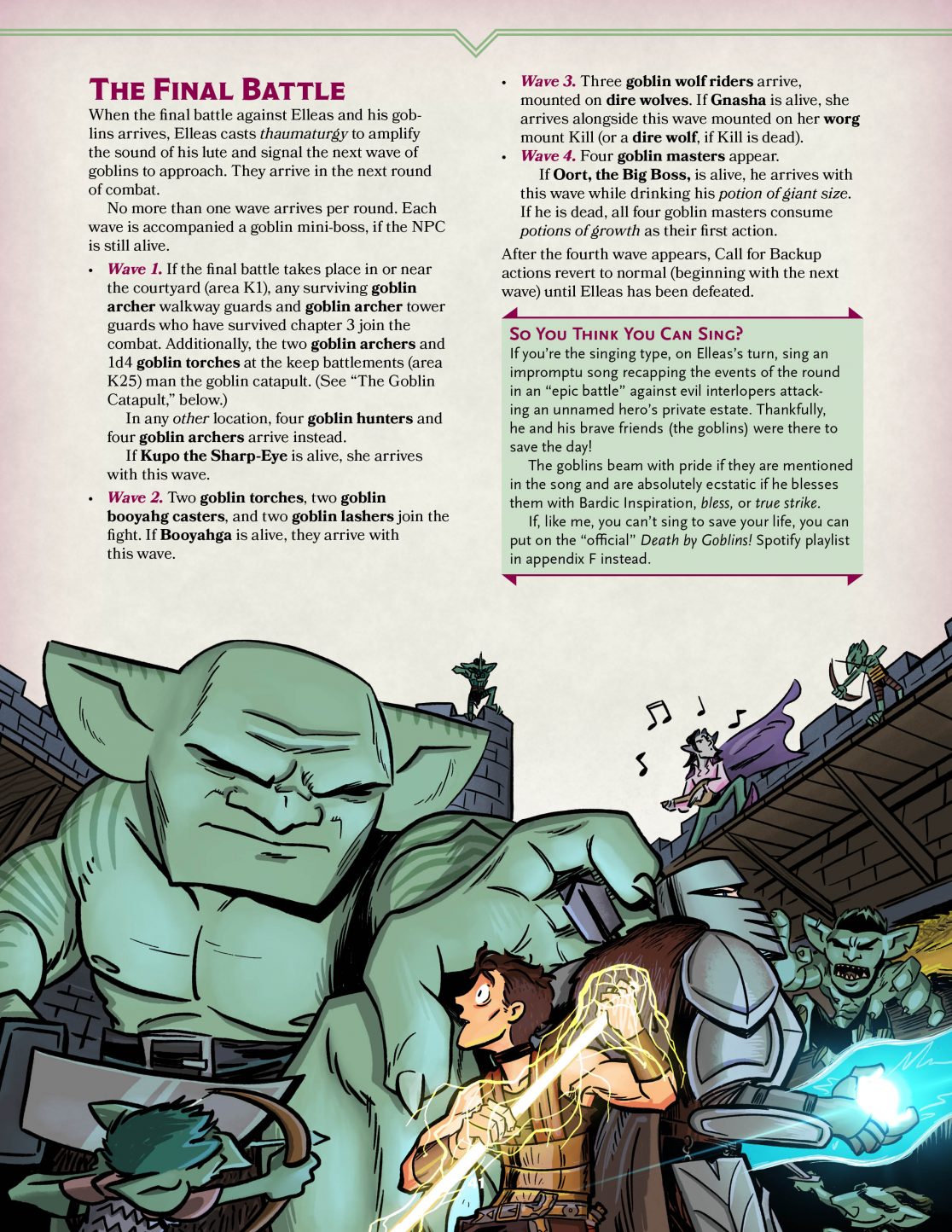 Death by Goblins! is a Dungeons & Dragons 5e adventure for sixth-level characters now available on the DMs Guild. In addition to the graphic design and illustration, I also wrote this book! It is designed as a funny, demented romp for players to test out some of the awesome new powers that D&D characters get around levels 5 and 6.